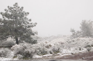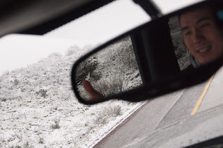 The drive home....we went from sunny to cloudy...to rain...sleet and SNOW! |